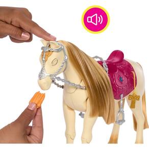 Inspirado na série Barbie Mysteries: The Great Horse Chase, este cavalo de brinquedo interativo tem mais de 20 sons e muitas maneiras de brincar!
