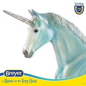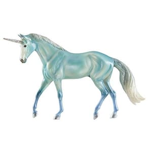 PRODUTO INTERNACIONAL. A série Liberdade da Breyer apresenta Le Mer, o unicórnio do mar. Com um belo casaco de espuma perolado e cauda e juba brilhantes, ele vigia silenciosamente seu reino oceânico