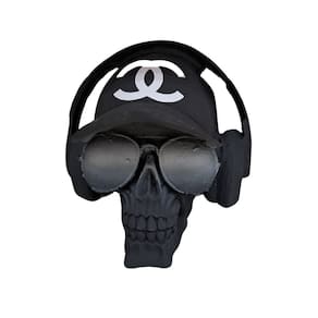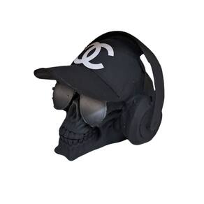 Caveira Boné Preta Chanel R.Skull Brand-02. Adicione um toque de ousadia e sofisticação ao seu ambiente com a Caveira Boné Preta Chanel . Este enfeite exclusivo combina arte e moda de forma singular, capturando a essência da Chanel com um design arrojado e contemporâneo.