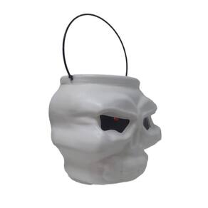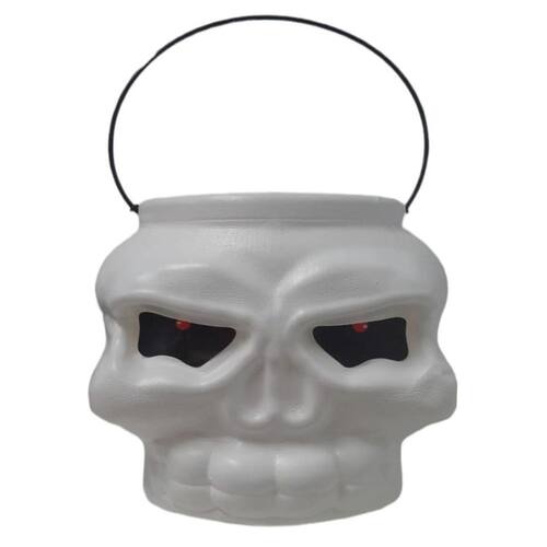 Caveira balde - halloween10 unidadebalde caveira halloween em plástico, com adesivo colado nos olhos. Ideal para colocar doces ou salgados e compor lindas decorações a mesa ou presentear os convidados da sua festa.Informações do produtomaterial: plástico e adesivos;medida da caveira: 16 x 16cm;medida da alça: 30cm;medida da parte aberta: 10cm;peso: 100g;cor: branco;marca: bellavalidade indeterminada;indicado para crianças acima de 3 anos.Atenção - não acenda vela dentro da caveira. Ean: 7904399443390