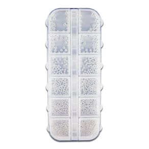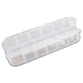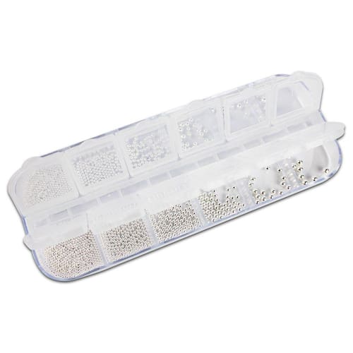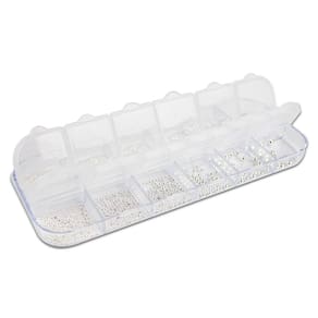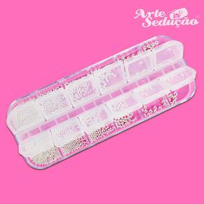 Contém: 01 - Caixa com 12 Divisórias, com Caviar para Decoração de Unhas, Prata, Diversos Tamanhos.