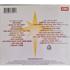 BACK to the LIGHT 1-1 The Dark 1-2 Back To The Light 1-3 Love Token 1-4 Resurrection 1-5 Too Much Love Will Kill You 1-6 Driven By You 1-7 Nothin' But Blue 1-8 I'm Scared 1-9 Last Horizon 1-10 Let Your Heart Rule Your Head 1-11 Just One Life 1-12 Rollin' Over OUT of the LIGHT 2-1 Nothin' But Blue (Guitar Version) 2-2 Too Much Love Will Kill You (Guitar Version) 2-3 Just One Life (Guitar Version) 2-4 Driven By You Two 2-5 Driven By You (Ford Ad Version) 2-6 Tie Your Mother Down (Live) 2-7 Too Much Love Will Kill You (Live) 2-8 '39 / Let Your Heart Rule Your Head (Live) 2-9 Last Horizon (Live) 2-10 We Will Rock You (Live) 2-11 Driven By You (Cozy and Neil Version '93)