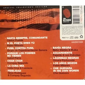Faixas: 1 Carlos Puebla– Hasta Siempre, Comandante 2 Pablo Milanés– Si El Poeta Eres Tú 3 Grupo De Experimentación Sonora Del ICAIC– Fusil Contra Fusil 4 Isabel Parra– Por Que Los Pobres No Tienen 5 Compay Segundo– Chan Chan 6 Celia Cruz, Lucrecia (3)– La Cuba Mía 7 Silvio Rodríguez, Compay Segundo– Fidelidad 8 Bebo Valdés, Concha Buika– Bahía Negra 9 Fajardo Y Sus Estrellas– Aguardiente 10 Omara Portuondo– Lágrimas Negras 11 Pablo Milanés– Los Años Mozos 12 Che Guevara– Che Guevara In His Own Words De Los Naranjos Marca: Não Informado