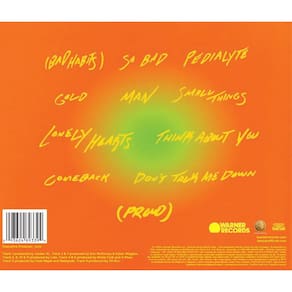 Track list: 1. Bad habits intro - 00:01:09 2. So bad - 00:03:11 3. Pedialyte - 00:04:06 4. Gold - 00:02:25 5. Man - 00:02:53 6. Small things - 00:03:27 7. Lonely hearts - 00:03:23 8. Think about you - 00:03:48 9. Comeback - 00:03:29 10. Dont talk me down - 00:03:25 11. Proud outro - 00:03:19 Ean: 0093624893394