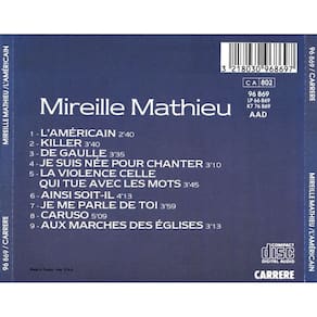 1 L'Américain Arranged By [Arrangements] – Bernard Estardy Producer [Réalisation Artistique] – Bernard Estardy, Didier Barbelivien Written-By – Didier Barbelivien 2:40 2 Killer Arranged By [Arrangements] – Bernard Estardy Producer [Réalisation Artistique] – Bernard Estardy, Didier Barbelivien Written-By – Didier Barbelivien 3:40 3 De Gaulle Arranged By [Arrangements] – Roger Loubet Producer [Réalisation Artistique] – Jacques Revaux Written-By – Jacques Revaux, Pierre Delanoé* 3:35 4 Je Suis Née Pour Chanter Arranged By [Arrangements], Producer [Réalisation] – Christian Gaubert Written-By – Christian Gaubert, Yves Duteil 3:10 5 La Violence Celle Qui Tue Avec Les Mots Arranged By [Arrangements] – Bernard Estardy Producer [Réalisation] – Didier Barbelivien Written-By – Didier Barbelivien 3:45 6 Ainsi Soit-Il Arranged By [Arrangements] – Bernard Estardy Producer [Réalisation Artistique] – Bernard Estardy, Didier Barbelivien Written-By – Didier Barbelivien 4:13 7 Je Me Parle De Toi Arranged By [Arrangements] – Bernard Estardy Written-By – Francis Lai, Pierre-André Dousset 3:59 8 Caruso Adapted By – Pierre Delanoé* Arranged By [Arrangements] – Raphaël Trabucchelli* Written-By – Lucio Dalla 5:09 9 Aux Marches Des Églises Arranged By [Arrangements] – Bernard Estardy Producer [Réalisation Artistique] – Bernard Estardy, Didier Barbelivien Written-By – Didier Barbelivien