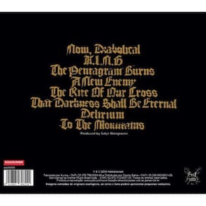 Os ritmos de condução e os padrões vocais de satyr são totalmente cativantes. Não se trata de virtuosismo ou exibições esotéricas para provar uma credibilidade underground. Trata-se de tempos de condução fortes e head banging com um rosnado no rosto. Tracklist: 01 - now, diabolical 05:29 02 - k.I.N.G 03;33 03 - the pentagram burns 05:36 04 - a new enemy 05:45 05 - the rite of our cross 05;43 06 - that darkness shall be eternal 04;46 07 - delirium 05:35 08 - to the mountains 08:09 Marca: Não Informado