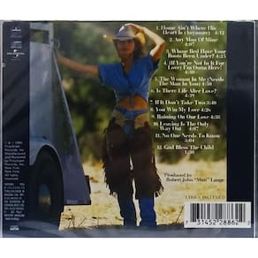 FAIXAS 1 Home Ain't Where His Heart Is (Anymore) Written-By – Lange*, Twain* 4:12 2 Any Man Of Mine Written-By – Lange*, Twain* 4:07 3 Whose Bed Have Your Boots Been Under? Written-By – Lange*, Twain* 4:25 4 (If You're Not In It For Love) I'm Outta Here! Written-By – Lange*, Twain* 4:30 5 The Woman In Me (Needs The Man In You) Written-By – Lange*, Twain* 4:50 6 Is There Life After Love? Written-By – Lange*, Twain* 4:39 7 If It Don't Take Two Written-By – Lange*, Twain* 3:40 8 You Win My Love Written-By – Lange* 4:26 9 Raining On Our Love Written-By – Lange*, Twain* 4:38 10 Leaving Is The Only Way Out Written-By – Twain* 4:07 11 No One Needs To Know Written-By – Lange*, Twain* 3:04 12 God Bless The Child Written-By – Lange*, Twain* 1:30 Marca: Universal Music