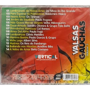 1 - Lembranças do Nosso Amor - Os Filhos do Rio Grande 2 - Para Esperar as Primaveras - Valdomiro Maicá 3 - Nosso Amor - Os Tiranos 4 - Jardim da Saudade - Paulo Fogaça 5 - Não Quero Morrer Virgem - Velho Milongueiro 6 - Doce Amada - Sandro Oliveira & Grupo Fole Solto 7 - Prendinhas Mimosas - Cid Ramos 8 - Amor Del Alma - Paulo Feijó 9 - Lembranças - Clóvis Mendes 10 - Morena Bonita - Paulo Garcia & Canto Missioneiro 11 - Volte Logo - Alberi Silva 12 - Motivos - Os Reis do Fandango 13 - Bailando nas Missões - Arnóbio Bilia 14 - A Valsa do Amor - Beto Caetano