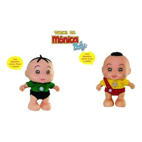 Cebolinha + Cascão baby da coleção Turma da Mônica, um boneco muito lindo e estiloso, todo em vinil com dispositivo sonoro, frases e canções. Brincar com a Turminha Baby nunca foi tão divertido. =======================================================================