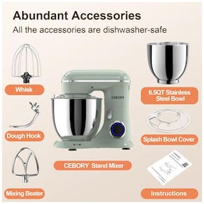 Conteúdo da embalagem: 1 batedeira planetária CEBORY SM-1533P, 1 tigela em aço inox, 1 gancho para massa, 1 batedor, 1 fouet, 1 protetor de respingos, 1 manual do usuário