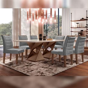 Conjunto Sala de Jantar Mesa Tampo Dakota Plus 160x80cm com 6 Cadeiras Luisa Cel Móveis Cinamomo/Off White/Suede Animale