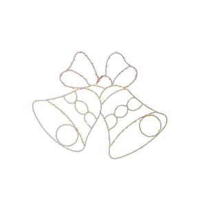 Silhueta de janela com sinos e laços iluminada por LED para Natal, dupla face, interna/externa