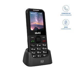 Celular Multi Vita 4G C/ Base Carregadora Dual Chip, Botão SOS, Câmera Preto - P9225