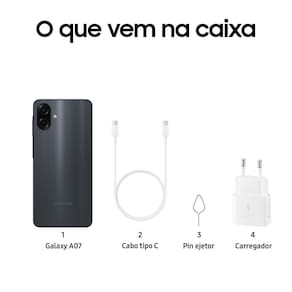 O Galaxy A07 chega para redefinir o que você espera de um smartphone feito para durar, entregando o melhor processador da categoria, câmera dupla de até 50MP, até 6 atualizações de Android e até seis anos de atualizações de segurança, proteção IP54 contra água e poeira, design fino e recursos que acompanham seu ritmo.