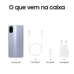 Celular Samsung Galaxy A07 128GB, 4GB, Câmera 50MP, Tela 6.7", Proteção IP54, Processador 6nm - Violeta