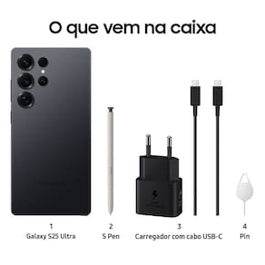Celular Samsung Galaxy S25 Ultra 5G, 256GB, 12GB RAM, Câmera Quádrupla de 200+50+10+50, Tela Grande de 6.9" - Titânio JetBlack