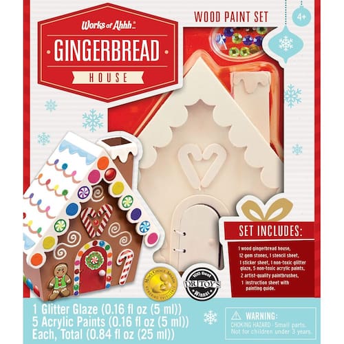 Works of Ahhh... Conjunto de artesanato natalino – Kit de tinta de madeira para casa de pão de gengibre – Vem