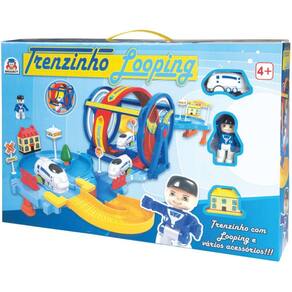 Cenário temático (playset) Trenzinho Looping Braskit Trenzinho movido a pilha, que passeia por uma incrível estação com looping. Peças de fácil encaixe que estimula a coordenação motora, capacidade visual da criança é diversão garantida. Recomendado para crianças a partir de 4 anos Usar 1 pilha "AA"a locomotiva, não inclusas. Recomenda-se usar pilha alcalina. Inmetro: 25351789-03