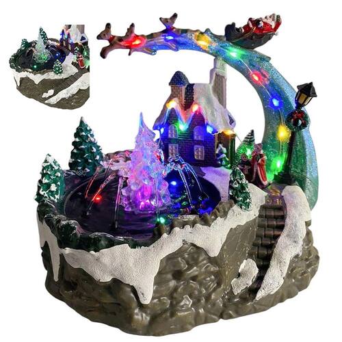 Cenario Vila Natalina Musical Natal Led Fonte de Agua Decoraçao Festa Fim de Ano Luz Som Papai Noel Rena Treno Aldeia Enfeite Celebraçao Reuniao