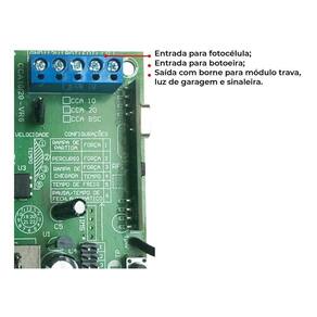 Modelo:CCA-10 Bivolts 127/220V Cadastra até 340 Botões de Controles Led´s indicadores de fim de curso abertura/fechamento Led PGM para indicar programação. Sistema:Code Learning, Rolling Code,Hope Code e Flex Code Entrada para fotocélula Entrada para botoeira Saída para módulo trava/luz de garagem (MTLG-RCG) Saída 12V/GND (para fotocélula RCG) Ajuste de freio eletrônico Ajuste de força(embreagem) Ajuste de tamanho de rampa (abertura e fechamento) Ajuste de torque de rampa (Abertura e fechamento) Ajuste de tempo de pausa (fechamento automático) Ajuste de partida suave Medidas: 85mm x 75mm Fabricante RCG