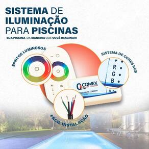Vantagens:brnossos produtos tem a melhor qualidade e eficiência, todos os produtos com 1 ano de garantia do fabricante.brbrmódulo rgb 180w:bro módulo rgb traz simplicidade e elegância, tendo uma utilização muito simples, eficiente e com um visual totalmente moderno e tecnológico, utilizando como fonte de interação da iluminação com o controle remoto. O módulo permite que você escolha efeitos, intensidade do brilho da iluminação, troca de cores com seleção minuciosa no anel de seleção de cores além de ligar e desligar a iluminação.brbrespecificações do módulo rgb:brlargura: 8,5 cm / altura: 4,5 cm / profundidade: 2,5 cmbrmaterial: abs brancobrpotência: 180w / alimentação: 12vccbr18 efeitos de luz / mais de 640.000 coresbrbrespecificações do controle:brmodo de funcionamento: rádio frequência rf braltura: 3,5 cm / profundidade: 6,5 cm / largura: 4cmbrtouch capacitivobrbrespecificações da fonte:brtensão de alimentação: 90240vca bivolt brtensão de saída: 12vccbrcorrente: 2abrbritens inclusos:br- 1 módulo rgb 180w 12v br- 1 controle br- 1 fonte 12v 2a Marca: Comex Indústria E Comércio