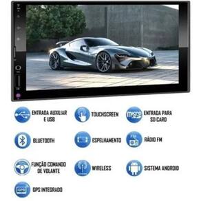 Especificações técnicas: - tela digital touch screen capacitiva de 7 com resolução de 1024 x 600 p; - sistema android 8.1.0 com processador quadcore arm 1.3 ghz; - memória interna de 16 gb; - função gps (necessita instalação do mapa e internet roteada através do telefone celular); - conexão usb e cartão mini sd; - conexão para ligações e músicas em aparelhos celulares; - sistema pal/ntsc/secam; - conectividade com rmvb, mpg4, divx, avi, mp3, mp4, mp5, mpeg, jpeg; - entrada para câmera de estacionamento traseira; - espelhamento de celulares android e ios via usb e sem fio; - conectividade com controles de som de volantes (consulte suporte do veículo); - rádio com 18 memórias de fm; - 4 saídas a fio 4x52w, 4 saídas rca e 1 saída para subwoofer; - controle remoto multi-funções; - 1 entrada de vídeo; - possui função logotipo de inicialização.