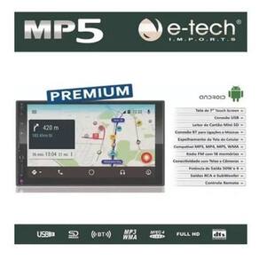 Central multimidia mp5 android gps 7' touch universal 2din Seu carro merece funções atuais e muita tecnologia com a multimídia mp5 e-tech de 7 polegadas com sistema android. Ela baixa seus aplicativos favoritos na play store e espelha seu celular android e ios. Reproduz vídeos rmvb, mpg4, divx, avi, mp4, mp5, mpeg e músicas mp3, conecta-se via wi-fi e bluetooth, tudo isso movido por processador quad core, memória interna de 16gb. Ele também tem excelente acabamento e encaixes perfeitos.