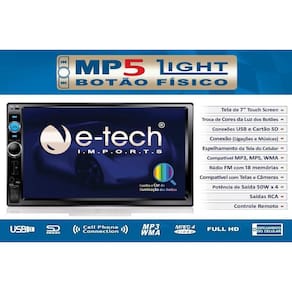 Central Multimídia Mp5 P/Carro 7 Polegada Etech Light Fullhd