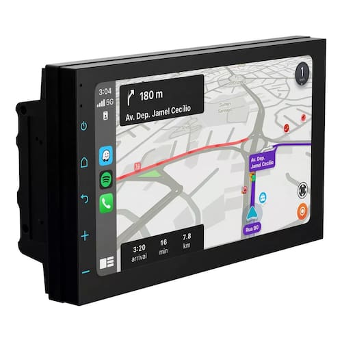 CARACTERÍSTICAS- Aparelho homologado: 14451-23-16000- Conectividade com CarPlay e Android Auto VIA CABO- Espelhamento de Smartphone (Android e IOS) VIA CABO- Entrada para controles de volante*- Tela de vidro 2.5D de 7 polegadas com resolução de 1024x600 Capacitivo- Formato 2Din- Entrada USB- Bluetooth- Entrada para câmera de ré- Saída de áudio: 4x50w- Saída para SubwooferTOUCH SCREEN CAPACITIVONavegue com agilidade e precisão na nossa tela touch capacitiva, projetada para uma resposta imediata e interação intuitiva.TELA DE 7 ALTA RESOLUÇÃODesfrute de vídeos em detalhes cristalinos na nossa vibrante tela de 7 polegadas de alta resolução, otimizada para clareza e cor.CONECTIVIDADE CARPLAY E ANDROID AUTOIntegre seu smartphone para acessar seus apps favoritos de música e navegação diretamente no painel do seu carro.ESPELHAMENTO IOS E ANDROIDEspelhe os aplicativos do seu smartphone na tela da central, garantindo acesso fácil e rápido às suas funcionalidades preferidas.TELA DE VIDRO 2.5DDesfrute da elegância e sensibilidade aprimorada de uma tela de vidro 2.5D, unindo estilo e funcionalidade de forma harmoniosa.ENTRADA PARA CÂMERA DE RÉ E FRONTALFacilite suas manobras com entradas para câmeras traseira e frontal, garantindo visão ampla e segura do entorno do veículo.BLUETOOTHRealize chamadas hands-free e transmita músicas com clareza e eficiência através da versão otimizada do Bluetooth 5.4.VÍDEO E MÚSICA DO USBAcesse e reproduza seus clipes e músicas favoritos rapidamente com nossas entradas USB intuitivas e práticas.CONECTIVIDADE AMPLIADAA nossa central oferece duas portas USB para smartphone e pendrive, entrada AV reversivel para TV Digital ou câmera frontal e saídas de áudio especializadas, inclusive para subwoofer. A saída de vídeo aprimora o entretenimento traseiro, e a entrada para câmera traseira eleva a segurança. Explore um mundo de conexões!ESPECIFICAÇÕES- Rádio: FM 87.50MHz-107.9MHz- Bluetooth: 5.4 HFP+A2DP- Tela: LCD de 7 Polegadas- Resolução de Tela: 1024600- Toque de Tela: Capacitivo- Proporção de Tela: 16:9- Sistema de Vídeo: NTSC- Saída de Áudio: 4 x 50W- Impedância: 4 Ohms- Tensão de Operação: 10.5-16V- Consumo em Stand-By: 2mA- Temperatura de Operação: -20 ~ 70C- Temperatura de Armazenamento: -40 ~ 85C- Iluminação dos botões: RGBMÍDIAS SUPORTADAS- Vídeo: MP4, AVI, DIVIX, VOB, FLV, MKV,- MPG, RM, RMVB, VOB, DAT, MP2, 3GP- Áudio: MP3, WMA, AAC, FLAC e WAV- Imagem: BMP, JPEG, GIF e PNGBLUETOOTH- Bluetooth Audio Streaming (Músicas)- Bluetooth Hands-Free (Chamadas Telefônicas)CONEXÕES- 2 Entradas USB traseiras- Entrada para câmera traseira- Entrada AV/câmera frontal- Saídas de vídeo para telas traseiras- Saída de áudio RCA para amplificador- Saída para Subwoofer- Entrada de comandos de volante para- carros com sistema resistivo- Entrada para antena de RádioITENS INCLUSOS- Central multimídia ConnectMedia Universal de 7- Chicote padrão ISO- 2 Chicote extensão USB- Chicote de entrada de câmera- Chicote de Conectividade RCA diversos- Suporte de fixação
