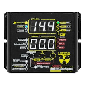 LANÇAMENTOCENTRAL DE CONTROLE FONTE USINA CONNECT.COM VOLTÍMETRO/AMPERÍMETRO LINHA SMART CONNECT. Garantia especial de 1 ano.ACOMPANHA CABO RJ45 5M. A Central Usina Controle Fonte Connect é a solução ideal para sistemas de som automotivo de alto desempenho. Com controle inteligente e monitoramento em tempo real, garante eficiência energética e desempenho máximo. Sua conectividade moderna permite integração com outros equipamentos e facilita o ajuste remoto, proporcionando um som mais potente e com maior estabilidade, mesmo em condições exigentes.Conectada, ela controla totalmente a fonte e, com displays duplos, monitora tensão e corrente das baterias.Flutuação automática: Sistema Smart Charger que controla a carga e a manutenção da carga da bateria;- Entrada RJ45;- Conectada, ela controla totalmente a fonte e, com displays duplos,- Monitora tensão e corrente das baterias- Flutuação automática: Sistema- Smart Charger que controla a carga e a manutenção da carga da bateria;- Função Voltímetro;- Compatível com Linha Connect;- Gabinete injetado em chapa de aço de alta resistência mecânica.- CÓDIGO: SU1232BVPESO APROXIMADO 720 gramasDIMENSÕES APROXIMADAS (CxLxA) 115mm x 87mm x 27,5mmDIMENSÕES APROX. TOTAIS (CxLxA) 151mm x 190mm x 50mmobs: Corrente e potência aferidos em carga resistiva.A potência de saída pode variar de acordo com a tensão da rede e condições de uso.As medidas referentes às dimensões das fontes possuem uma variação deaproximadamente 2mm. Conteúdo da Embalagem:• 1 Central Smart Connect• 1 Manual de InstruçãoRECOMENDAÇÕES ANTES DA COMPRAVerifique a compatibilidade do produto com seus equipamentos para que não existam problemas na hora do uso! Verifique isso com seu instalador ou profissional contratado antes da compra.Verifique a voltagem, potência, impedância e outros detalhes que poderão inviabilizar a instalação ou provocar danos ao produto ou ao veículo ou equipamentos não cobertos pela garantia.Para produtos que necessitam instalação, a mesma deve ser feita por um profissional capacitado, não nos responsabilizamos por uso indevido ou instalação incorreta feita pelo próprio usuário ou outro não habilitado.