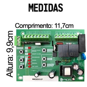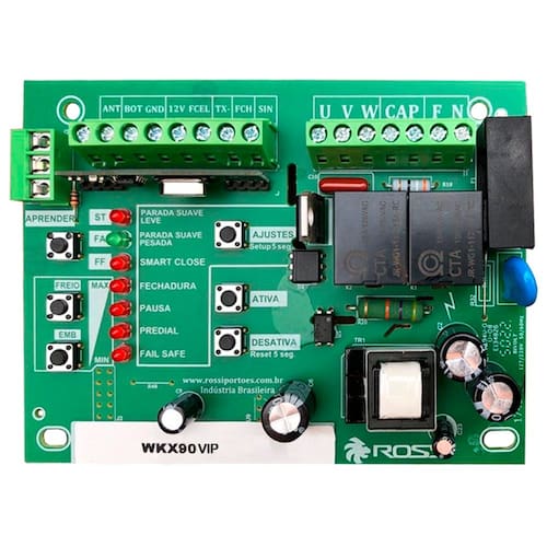 Especificações - Módulo de recepção RF em cristal; - Sistema de recepção HCS, anti-clonagem; - Parada suave programável; - Função Smart Close, que diminui ou zera possíveis folgas entre o portão e o batente; - Apaga controle individual; - Freio eletrônico com 5 níveis; - Grava controle Master; - Entrada para fotocélula com fail safe e sinaleira; - Saída para luz de garagem.
