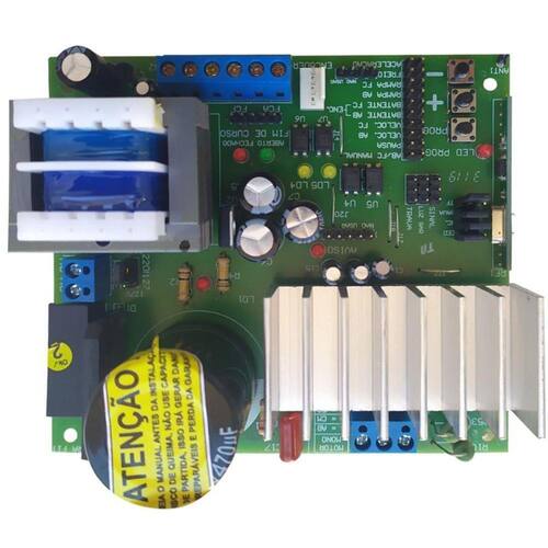 Central universal idealse inversora Características: -alimentação por transformador bivolt 127v/220v, selecionado por strap -capacidade para motores monofásico até 4a e trifásico de ate 6a -fusível de ação rápida de 7a -saída de 12v por bornes (100ma máx.) -entrada para botoeira e fotocélula por bornes -entrada para motor por bornes -entradas de fim de curso por bornes, barra de 5 vias e barra de 3 vias (usando os 3 pinos do entrada para três opcionais a relé (vendidos separadamente), com funções de trava elétrica, sinaleiro e luz de garagem (2 minutos); -atraso de partida quando instalada a trava elétrica, selecionada por strap -acionamento da trava elétrica na abertura e no fechamento -entrada para encoder e detecção automática do numero de passos -possibilidade de funcionar somente com reeds de fim de curso, somente com encoder, ou ambos (modo híbrido) -leds indicativos de fim de curso aberto e fechado -leds indicativos de funcionamento do encoder -led indicativo de programação partida e paradas super suaves detecção automática de tipo de motor e meio da barra de 5 vias) inversão automática de cabos proteção contra sobretensão, sobrecorrente, super aquecimento. -led indicativo de tensão no barramento -tempo de pausa configurado por chaves táctil + e -regulagem de velocidade de abertura/fechamento independente (máx. 150hz). -regulagem automática de rampa de abertura e fechamento, podendo também ser ajustados manualmente -distância de parada do batente (quando funcionando somente por encoder) pode ser ajustado manualmente -freio ajustado por chaves + e -ajusta de aceleração por chaves + e -tempo de pausa ajustado por chaves + e Cadastra até 512 códigos code learning ou rolling code Acompanha o produto: 01 central universal idealse inversora Garantia: 90 dias a partir do recebimento