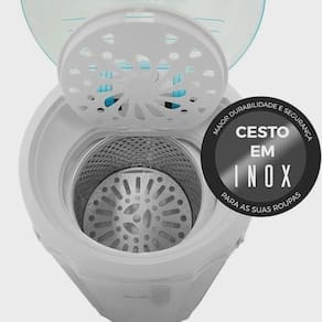 Centrífuga de Roupas Britânia BCR15B com capacidade de 15kg de roupas molhadas e 5kg de roupas secas, timer de 5 minutos, cesto em aço inox com abertura extragrande e grade de proteção.Programas