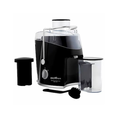Características Gerais do produto Centrífuga de Alimetrosentos Britânia Juicer 700 cometros potência de 400W, 2 velocidades e capacidade de 450metrosl.