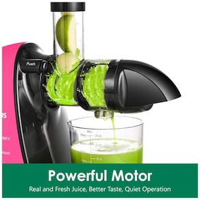 Característica especial: Operação mais silenciosa, 95-110 RPM de baixa velocidade, fácil de limpar, fácil de usar, fácil de montar, sem BPA, motor silencioso, função reversa, alto rendimento de suco para frutas e vegetais, adequado para maçãs verdes, abacaxi, espinafre, salsa, limão e gengibre, couve, grama de trigo, beterraba, manga, tomate, laranja