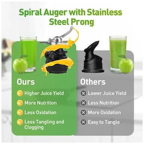 Centrífuga de frutas com broca espiral de aço inoxidável, filtro sem malha e função reversa. Possui tecnologia Slow Squeeze, minimizando o acúmulo de calor e a oxidação.Nº de velocidades