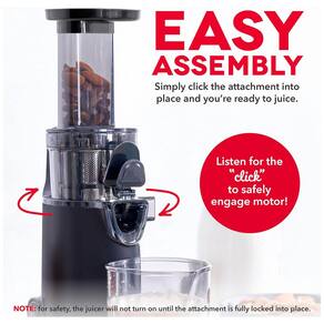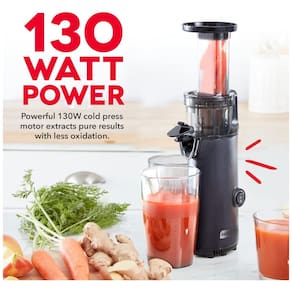 Motor de 130 Watts para extração máxima de nutrientes. Função de separação de suco e polpa. Design compacto. Inclui acessório para fazer sorvete.