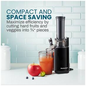 Centrífuga de frutas Elite Gourmet EJX600 com alto torque, baixa velocidade (70 RPM), chute de alimentação alto, tamanho ultra compacto, copo de suco de 16 oz e recipiente de polpa separado. Fácil de limpar com peças laváveis.Nº de velocidades