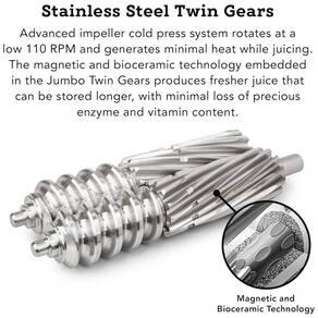 Centrífuga de frutas profissional Tribest GS P502, 110V, com tecnologia magnética e biocerâmica para extrair suco denso em nutrientes, fácil de limpar e versátil para diversos tipos de frutas e legumes.Nº de velocidades