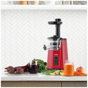 Centrífuga de frutas Omega JC3000RD13 com tecnologia de prensagem a frio, baixa velocidade de extração (45-65 RPM), fácil operação com duas velocidades e função reversa, torneira anti-gotejamento e intertravamento de segurança.Nº de velocidades