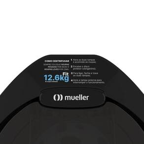 Centrífuga de roupas Mueller Fit com capacidade de 12,6kg (roupa molhada), 1720 rotações por minuto, dupla tampa, grade de proteção e pegadores laterais.Programas