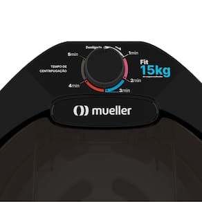 Centrífuga Mueller Fit com capacidade de 15kg de roupa molhada (equivalente a 5kg de roupa seca) e 1720 RPM. Possui encaixe para reaproveitamento da água.Programas