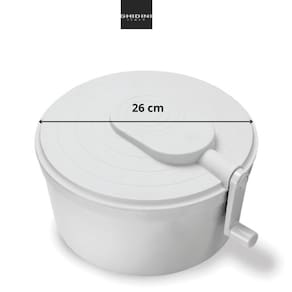 Centrífuga Lava e Seca Salada Saladeira Manual Verduras Folhas Alface Secador Branca Ghidini Importada A centrífuga de salada é um utensílio de cozinha que serve para secar folhas de verdura após a lavagem. Ela é um secador que usa um mecanismo de rotação para remover a água. Para que serve Secar folhas de verdura, como alface, rúcula e espinafre Higienizar e secar legumes e frutas Escorrer massas Manter as folhas frescas e conservadas por mais tempo Aumentar a conservação da salada Como usar Coloque as folhas na centrífuga Gire a manivela A vasilha de dentro gira e a água escorre para o fundo Vantagens Seca as folhas rapidamente Deixa as folhas sequinhas e prontas para o consumo É higiênica, pois pode ser limpa com água e esponja com detergente É versátil e pode ser usada também para servir