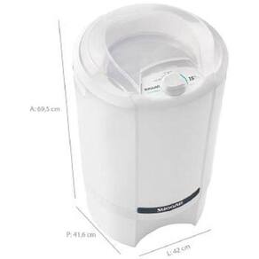 Centrifuga suggar giromax - ct1502br Características Capacidade: 15kg de roupas molhadas ou 5kg de roupas secasTimer de 6 min. Com desligamento automáticoSaída de água frontalBase larga: garante maior estabilidadeGrade de proteção para fechamento do cestoSistema de trava de segurança patenteado: impede a abertura da tampa durante o funcionamentoAlta eficiência: centrifuga muito mais suas roupasPorta fio integrado na basePotência: 180wBaixo consumo: 0,18kwh Dimensões Altura:69,5 cmLargura:42 cmProfundidade:41,6 cmPeso:6,55 kg Cor: branco - voltagem: 220 volts -