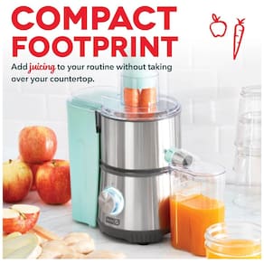 Centrífuga de Frutas Dash Compacta com 2 velocidades ajustáveis, peneira de aço inoxidável e separador de polpa. Ideal para preparar sucos de frutas e vegetais.Nº de velocidades