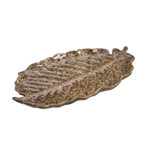 O Centro de Mesa Blatt tem 42 cm e é produzido em cerâmica, com acabamento com esmalte reagente, atribuindo à peça características que se assemelham com o natural. O formato de folhagem confere um visual orgânico e natural para decoração.