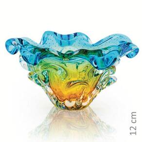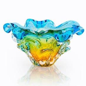 Centro De Mesa Cristal Murano Azul E Âmbar São Marcos 25cm Centro De Mesa Em Cristal Murano Azul E Âmbar - São Marcos é uma peça decorativa produzida 100% artesanalmente com a técnica secular e originária da Itália, a qual com muita maestria e criatividade são desenvolvidas e preservadas no brasil pela Cristais São Marcos desde 1962.