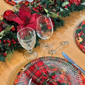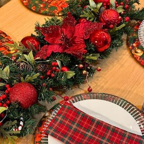 Centro de Mesa de Jantar Natalino Arranjo Decoração de Natal Cor: Vermelho Centro de Mesa Natalino Montado - O Toque Perfeito para suas Festas Medidas: 94 cm de comprimento x 32 cm de largura Cores Disponíveis: Vermelho e Dourado Itens Inclusos: