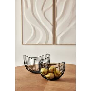 Moderno e versátil, este centro de mesa em metal preto traz um toque sofisticado e contemporâneo para a decoração. Sua estrutura vazada garante leveza visual, tornando a peça ideal para composições com frutas, objetos decorativos ou uso solo.