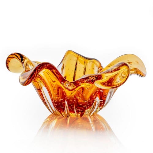 Centro De Mesa Em Cristal Murano Ambar São Marcos Comprimento:26cm Largura:26cm Altura:10cm Peso:2340g Produzida 100% artesanalmente com a técnica secular e originária da Itália, a qual com muita maestria e criatividade são desenvolvidas e preservadas no Brasil pela Cristais São Marcos desde 1962. As escolhas das peças são versáteis e podem ser usadas para decorar casas e ambientes dos mais variados estilos. A tradição do Cristal Murano e a inovação em detalhes, formas e cores, trazem requinte para a decoração. O colorido do Muranoem especial, tornase um coringa na decoração e produzem um efeito muito bonito em locais com luz natural, não dependendo de nenhum outro elemento para se destacar. As peças em Cristal Murano, são atemporais, aposte nelas como a estrela da decoração ou ainda para harmonizar em combinações com diferentes artigos para compor um ambiente. Junto com as peças em Murano, leve ainda um pouco de história. Uma dica é misturar diferentes Muranos e criar sua coleção de arte particular. O cristal Murano, tornouse objeto de desejo por suas caracteristicas únicas. Sendo assim, com todas essas particularidades, ele é uma ótima escolha para decorar, colecionar e ainda presentear com classe e sofisticação.